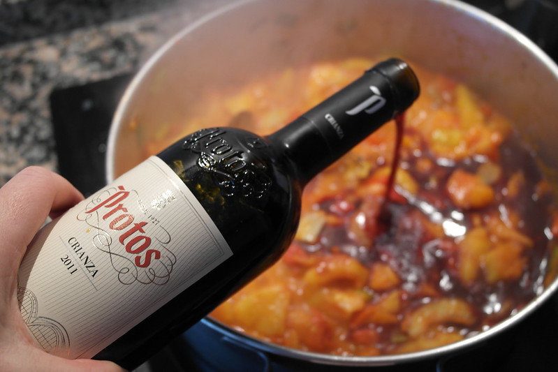 Preparación del estofado de rabo y verduras
