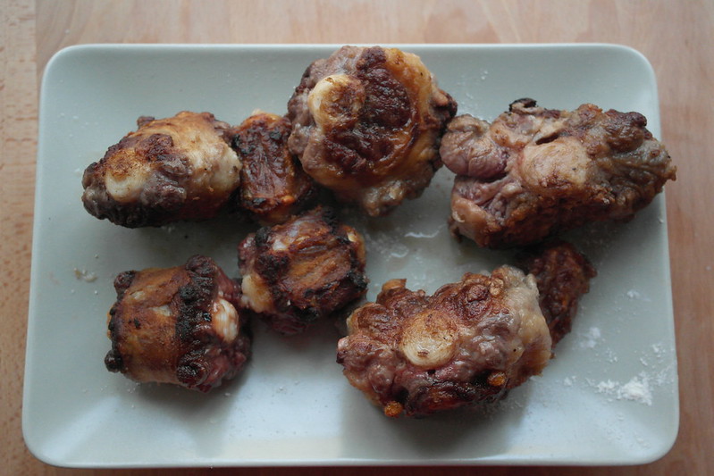 - Pedimos al carnicero donde compremos la carne que nos la trocee. Salpimentamos los trozos y los enharinamos para dorarlos.
